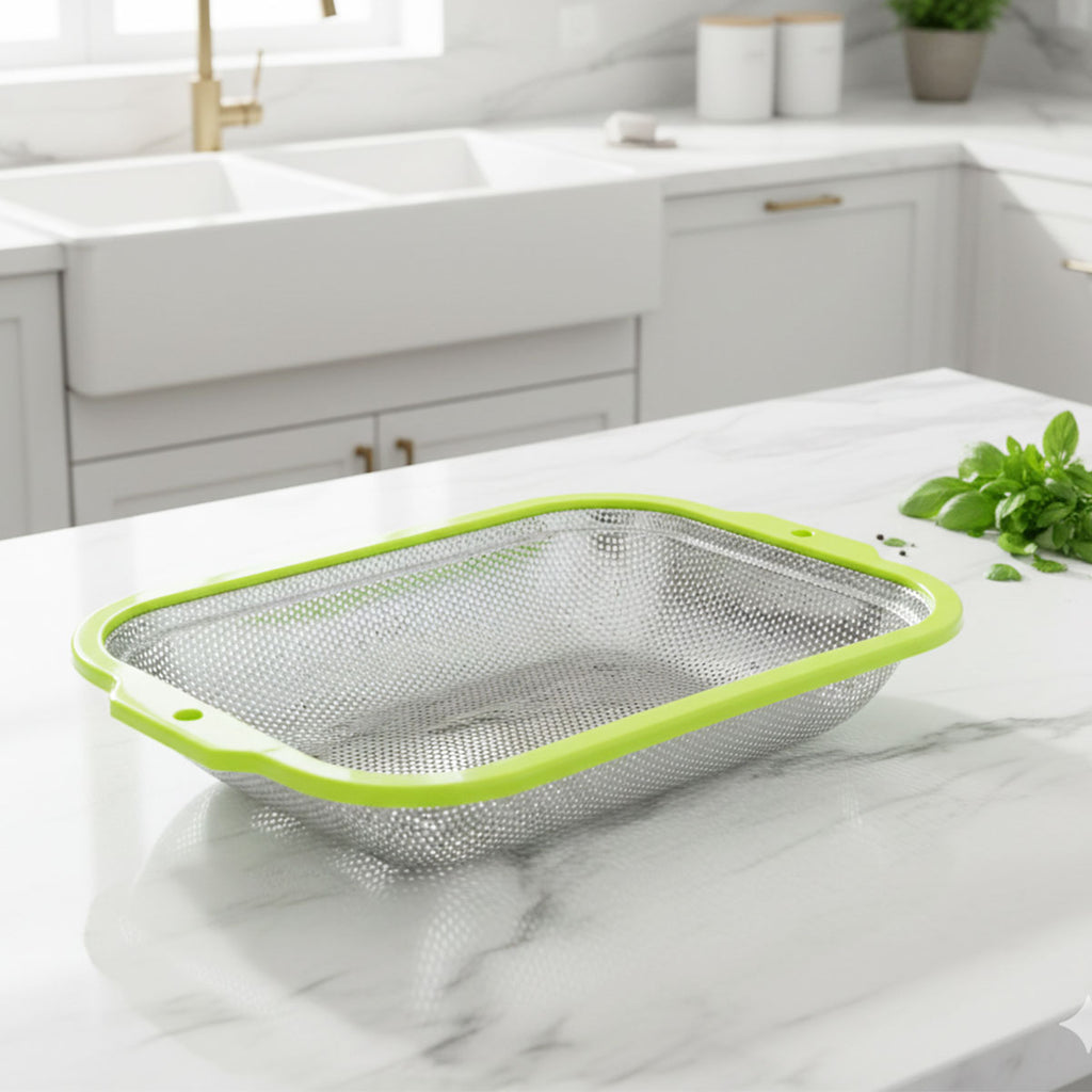 Perforations: The fine, dense perforations (holes) allow water to drain quickly while retaining small items like rice or quinoa.