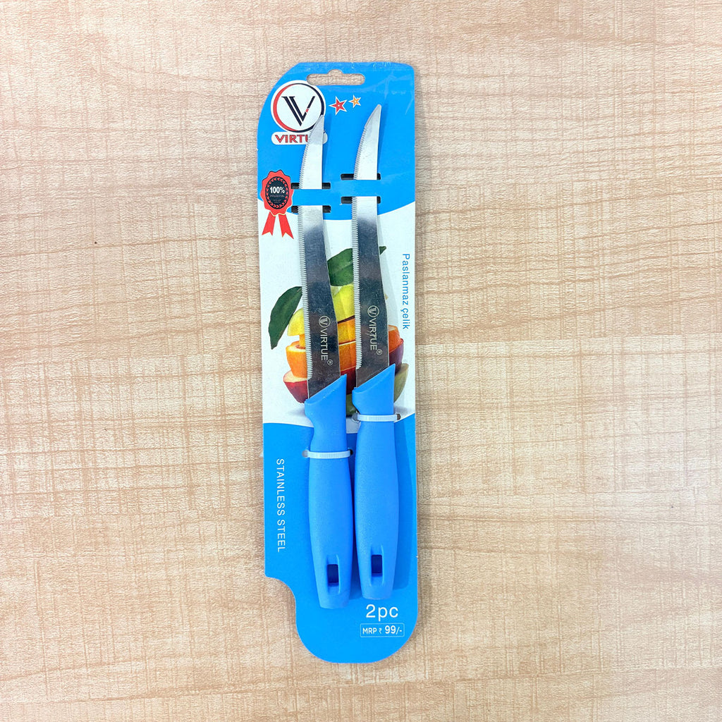 TM0088 Virtue 2-Piece Stainless Steel Utility Knife Set with Ergonomic Blue Handles