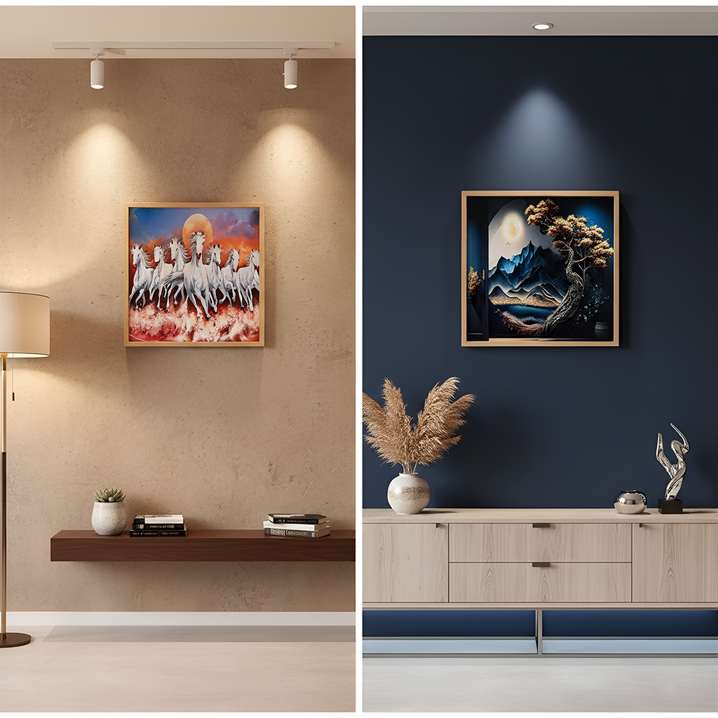 - Framing: Comes in a slim, elegant frame (visible in the packaging) that provides a clean, modern border without distracting from the artwork.