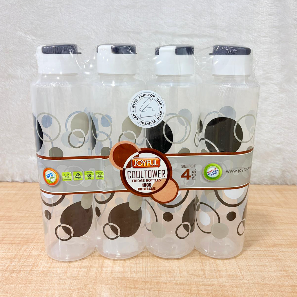 TM0174 Joyful Cool Tower 1000ml Fridge Bottles with Flip-Top Cap (Set of 4)