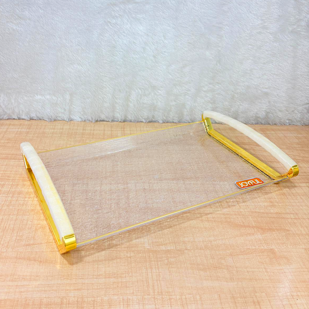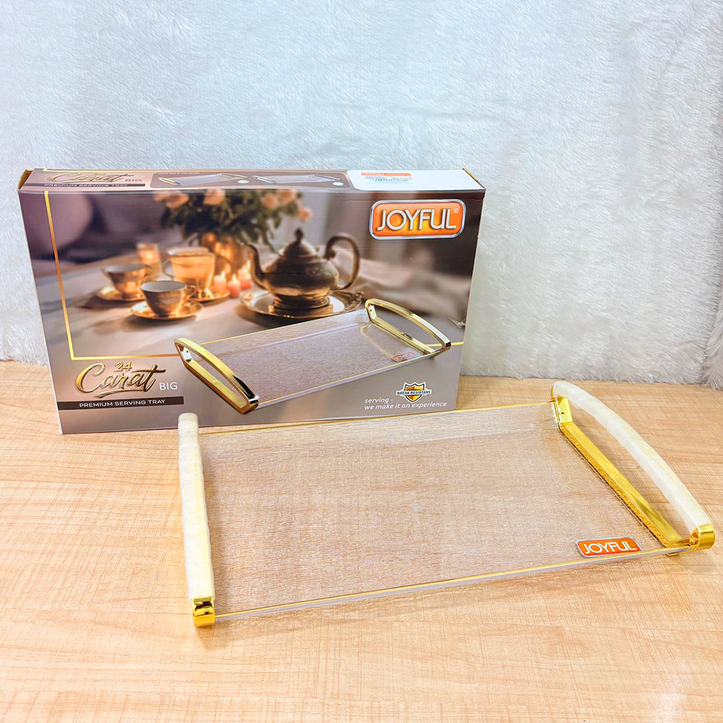 TM0184 JOYFUL 24 Carat Premium Big Serving Tray with Gold-Tone Handles (Big)