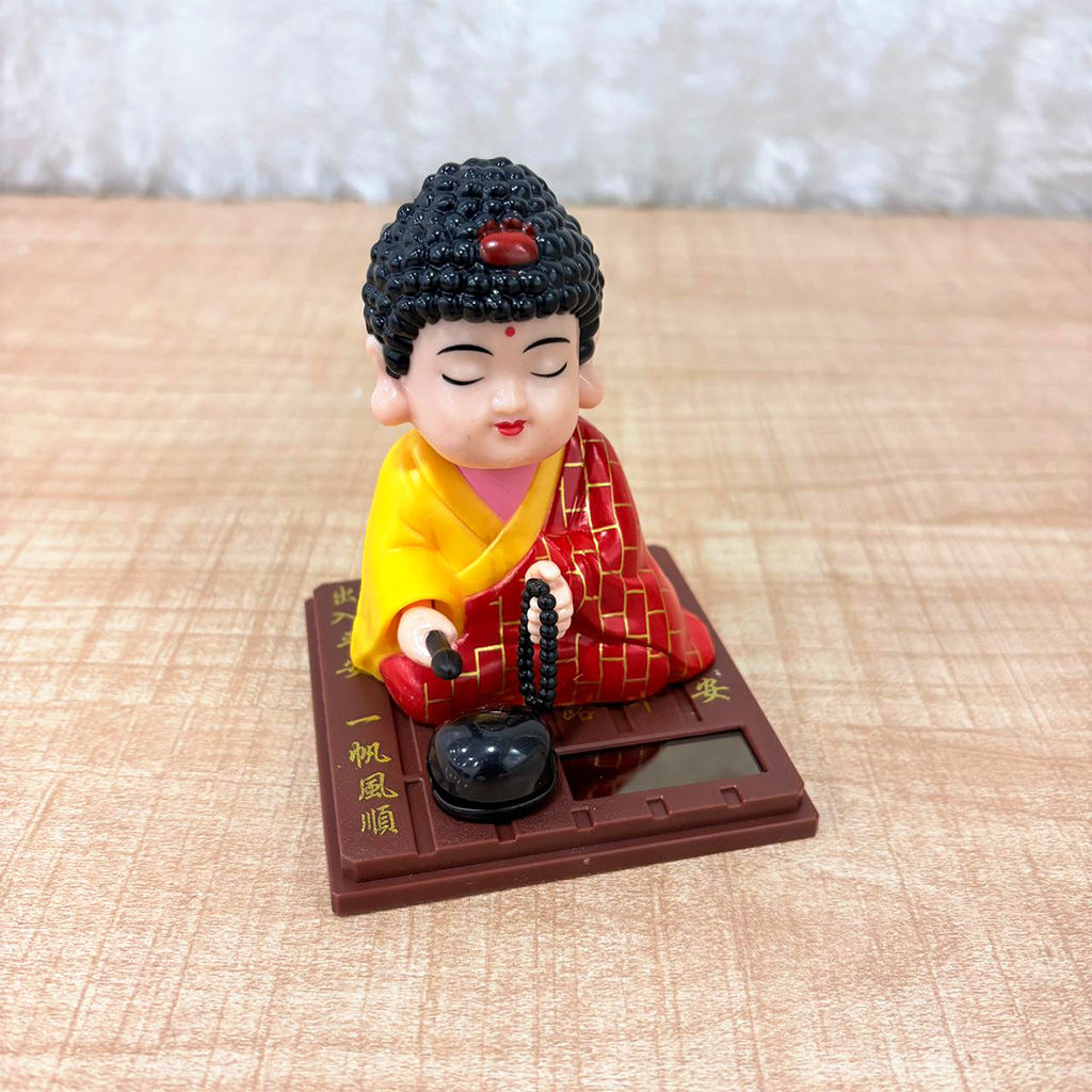 - 🌞 Solar-Powered Moving Head Buddha This solar-powered Laughing Buddha statue features a moving / shaking head that gently nods using solar energy, requiring no batteries. Eco-friendly and energy efficient.